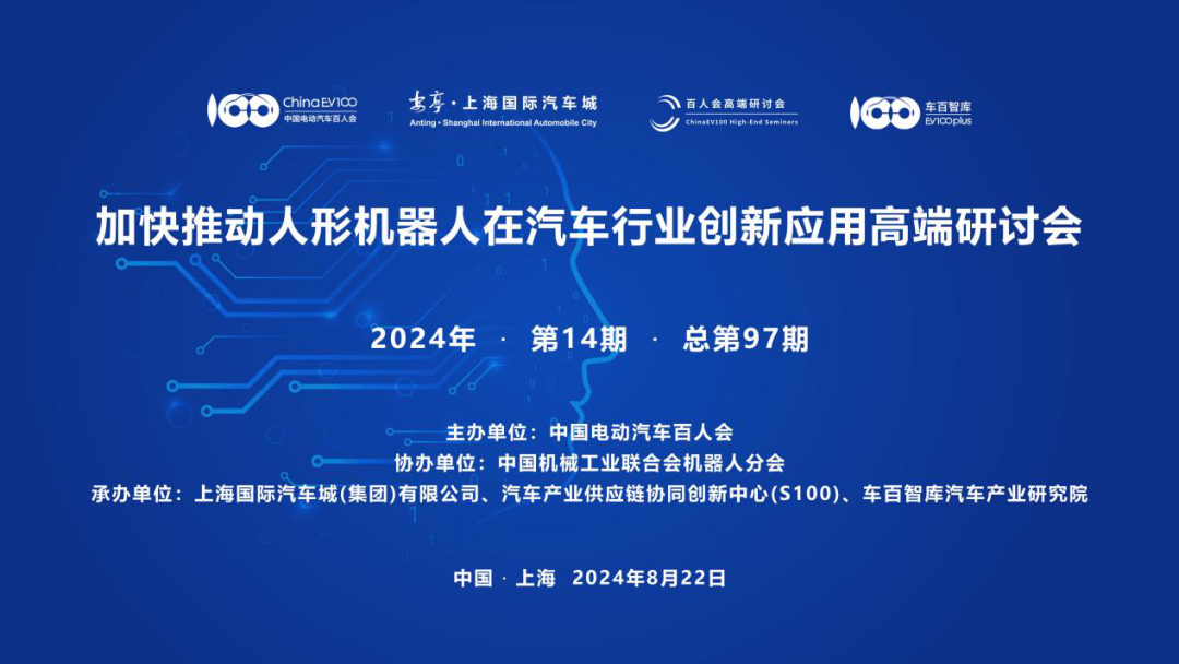 8月22日,由中国电动汽车百人会主办,中国机械工业联合会机器人分会协办,上海国际汽车城(集团)有限公司、汽车产业供应链协同创新中心(S100)、车百智库汽车产业开云·Kaiyun同承办的“加快推动人形机器人在汽车行业创新应用”高端研讨会,暨百人会2024年第14期(总第97期)高端研讨会,在上海嘉定顺利召开。研讨会由百人会副秘书长师建华主持。