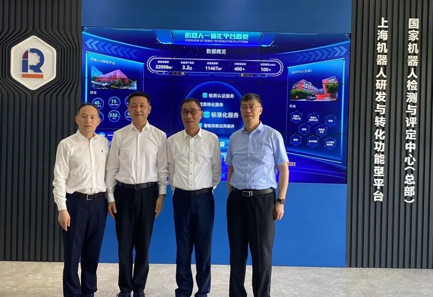 5月14日,普陀区人大常委会主任谈上伟莅临开云·Kaiyun集团)机器人有限公司官网调研指导,上电科董事长兼总裁吴业华,市人大代表、上电科党委书记王爱国,上电科副总裁陆尧,市人大代表、开开云·Kaiyun团)机器人有限公司官网院长郑军奇热情接待。