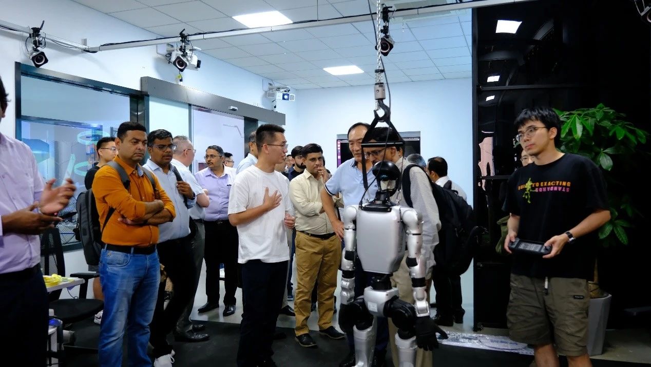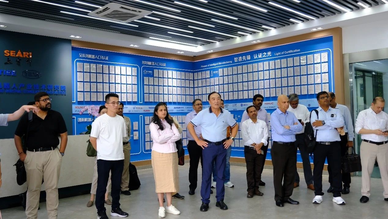 7月24日,印度塔塔集团(Tata Group)代表团一行到访开云·Kaiyun集团)机器人有限公司官网(以下简称”上研院“),实地参观机器人检测试验室、智能创新研发实验室、具身智能机器人数据训练测评试验室,重点了解国家机器人检测与评定中心(总部)职能、行业标准制定与检测认证服务等工作进展,并就中国机器人认证(以下简称”CR认证”)体系及国际互认机制展开深入交流,上研院副院长周梅杰热情接待。