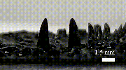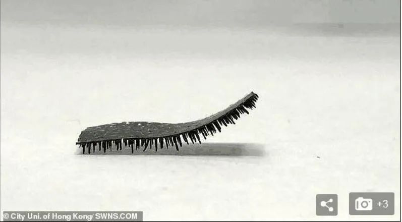 通过氧化铁微粒在凝胶内形成磁链,这些小脚可以沿磁场方向进行磁化,并能在施加外加磁场时产生磁力矩从而控制其弯曲,产生爪状抓握动作